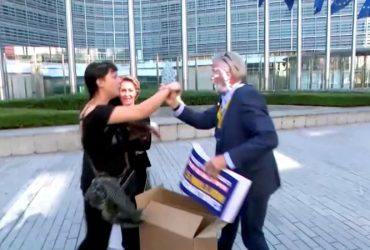 Ryanair CEO pied in the face by climate activists in Brussels